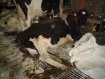 In this tie-up stable the cows stand on concrete with a little bit of straw (too hard) | |