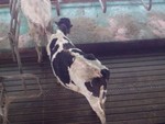 Cow is laying on the slatted floor | |
