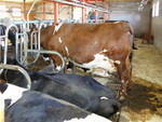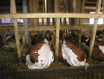 free stall stables, which we visited, were only some couple of years old, so the farmers hadn't any problems with too small boxes. But the cows had problems with laying down or standing up because of seperation bars. It wasn’t possible for the cow to do it in a naturally way.